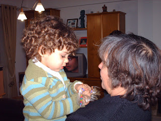 eis a Camila e o Bernardo, nas mãos da mamãe Sabel e do... bom, sem comentários. o tempo passa a correr e ainda ontem eu, com o meu bólide acabadinho de comprar, marcava presença no casamento dos seus pais. ainda ontem admirava os caracóis lindos da princesa. ainda ontem eu fui escolher o fato de baptizado do Bernardo.